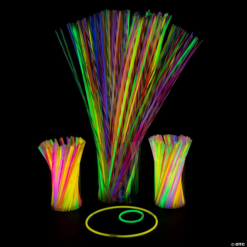 Everyone can get their glow on with this massive glow jewelry assortment! With 500 pieces, you’ll have enough to go around at a large party, outdoor event, concert or carnival. Hand out this jewelry as party favors that everyone will love! Includes 250 bracelets and 250 necklaces. Plastic. (500 pcs. per unit) Bracelets, 8″; necklaces, 22″; connectors, 1″. Assortment may vary. Simple Assembly required.