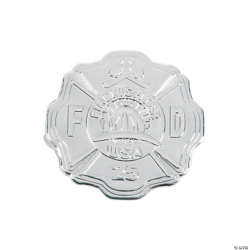 Are you throwing a firefighter birthday party and looking for the perfect party supplies? Extinguish those party concerns with these Firefighter Badges.The perfect party favors for firefighters in training, these plastic badges look just like the real thing! Hide them in your party goody bags for your little firefighters to enjoy long after those birthday candles have been put out. Metallic finish. Plastic with safety pin on back. 2 1/2″ x 2 1/2″ ยฉ OTC