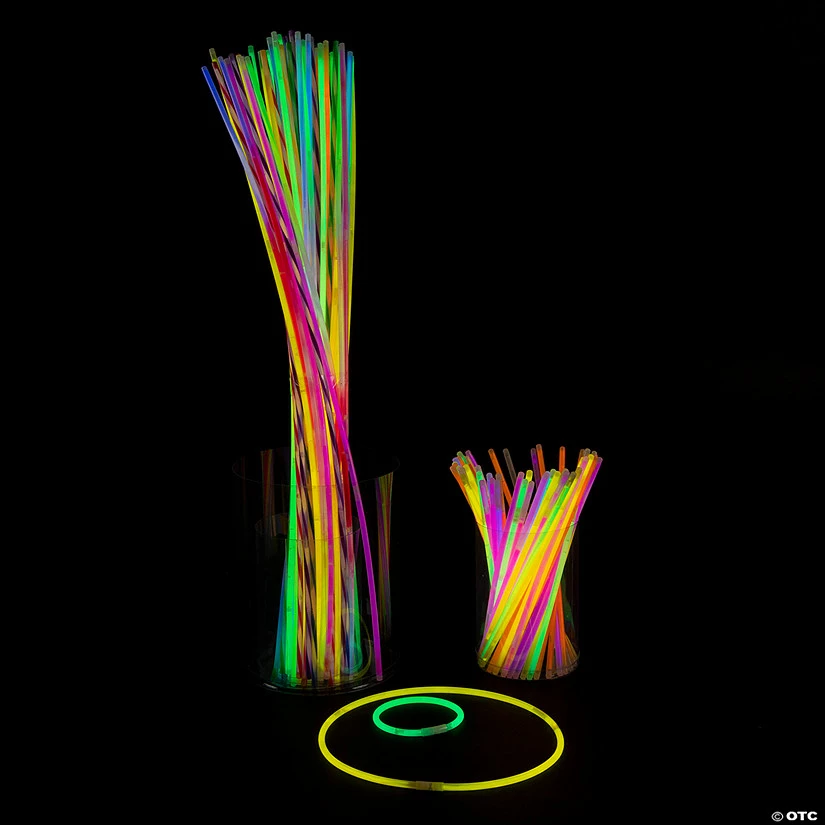 Keep your party glowing with this huge assortment of glow jewelry! In a rainbow of colors, these bracelets and necklaces will light up the evening and night in a fun way. Hand them out to partygoers when they arrive or as party favors. Includes 50 bracelets and 50 necklaces. Plastic. (100 pcs. per unit) Bracelets, 8″; necklaces, 22″; connectors, 1″. Assortment may vary. Simple assembly required.