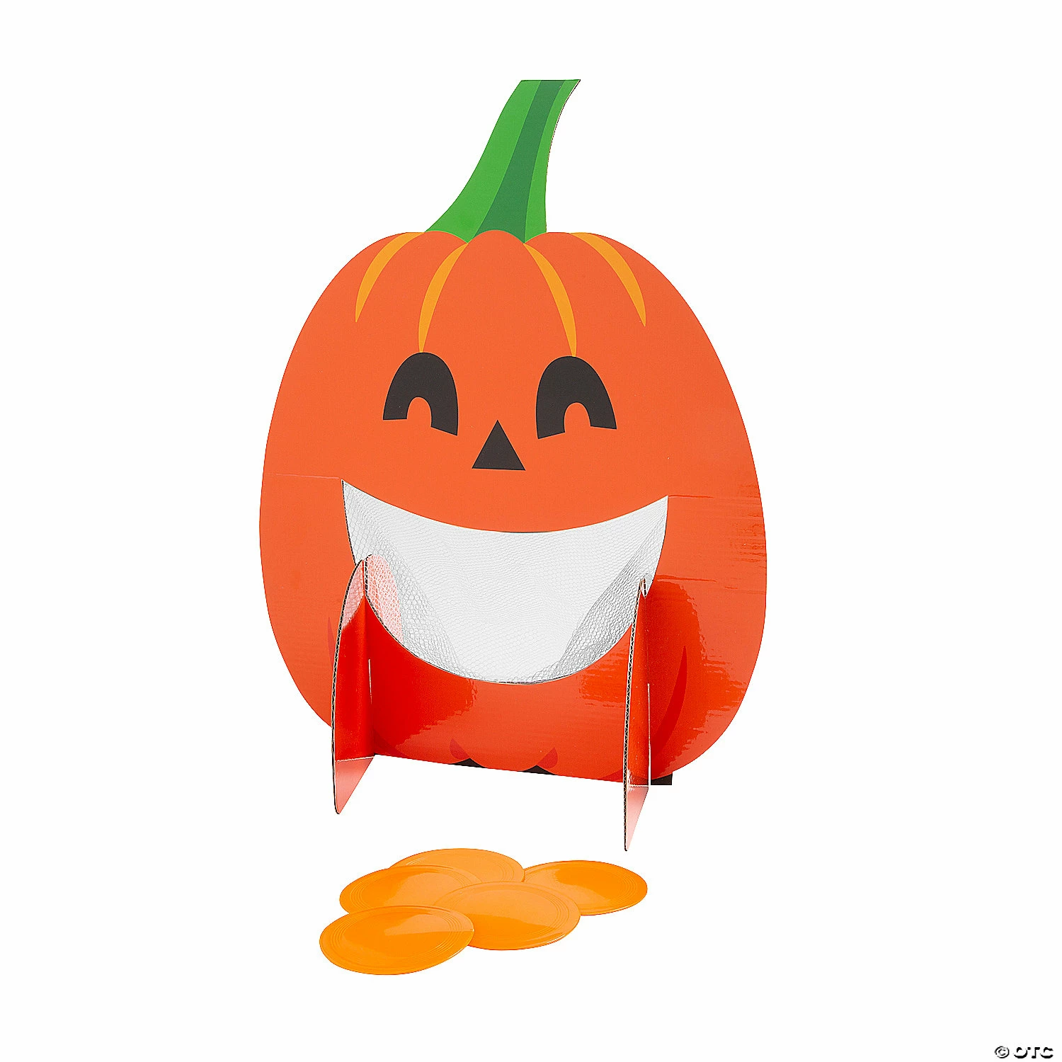 Your Halloween party will be extra exciting when you add this disc toss game to your party supplies. This game features a smiling jack-o-lantern pumpkin game board and five plastic discs to try and toss into the mouth. The game is a fun way for kids to practice hand-eye coordination while enjoying your Halloween festivities. Includes 1 game board and 5 plastic discs. Cardboard. (6 pcs. per set) Game board, 15 1/4″ x 19 1/4″; plastic discs, 3 1/2″ diam. Simple assembly required. © OTC