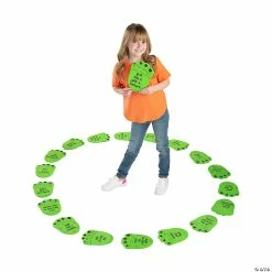 This fun twist on musical chairs is one in which everyone wins! Set out the foam feet in a circle, start up some fun tunes and walk, hop or skip from monster foot to monster foot until the music stops. Then look down at the foot you landed on, read off the instructions and perform the fun task, which could have you doing a monster dance, shaking like a scaredy cat or cackling like a witch. Whether you use this as a Halloween party activity, Physical Education game or family game night fun, one thingβs for sure: this active play activity will have everyone howling with laughter! Foam. (30 pcs. per unit) 6″ x 7 3/4″ Β© OTC