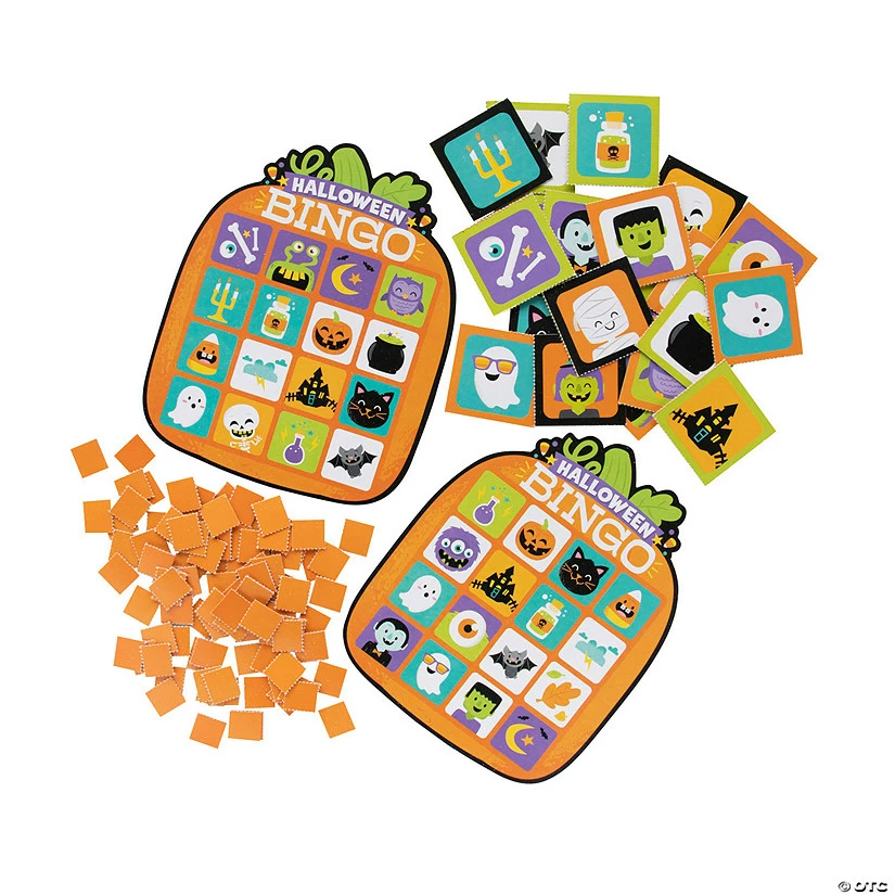The whole monster gang is here, but no need to fear. They just want to join in on the Halloween cheer! Kids will have a blast playing this bingo game featuring classic and not-so-spooky monsters like a vampire, a green monster and a mummy. Perfect for Halloween parties and classroom activities. Paper. (22 pcs. per unit) Sixteen 6 1/4″ x 7 3/4″ game cards; two 6″ x 8″ sheets each with 12 call out cards; four 6″ x 8″ sheets each with 99 chips. © OTC