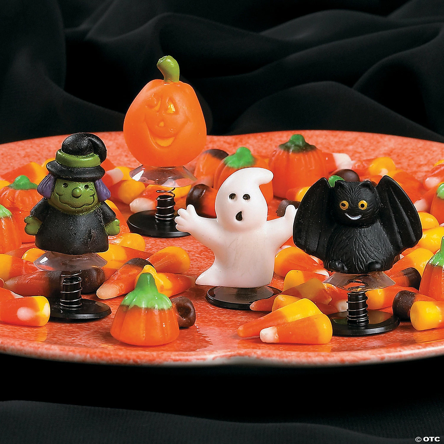 Little ghouls and goblins love to push these vinyl characters down, then watch βem pop back up! These bats, pumpkins, witches and ghosts make frightening favors for a haunted house party. You can also hand out these βspooktacularβ toys to trick-or-treaters for a fun alternative to candy! (2 dozen per unit) 2″ – 2 1/2″ Β© OTC