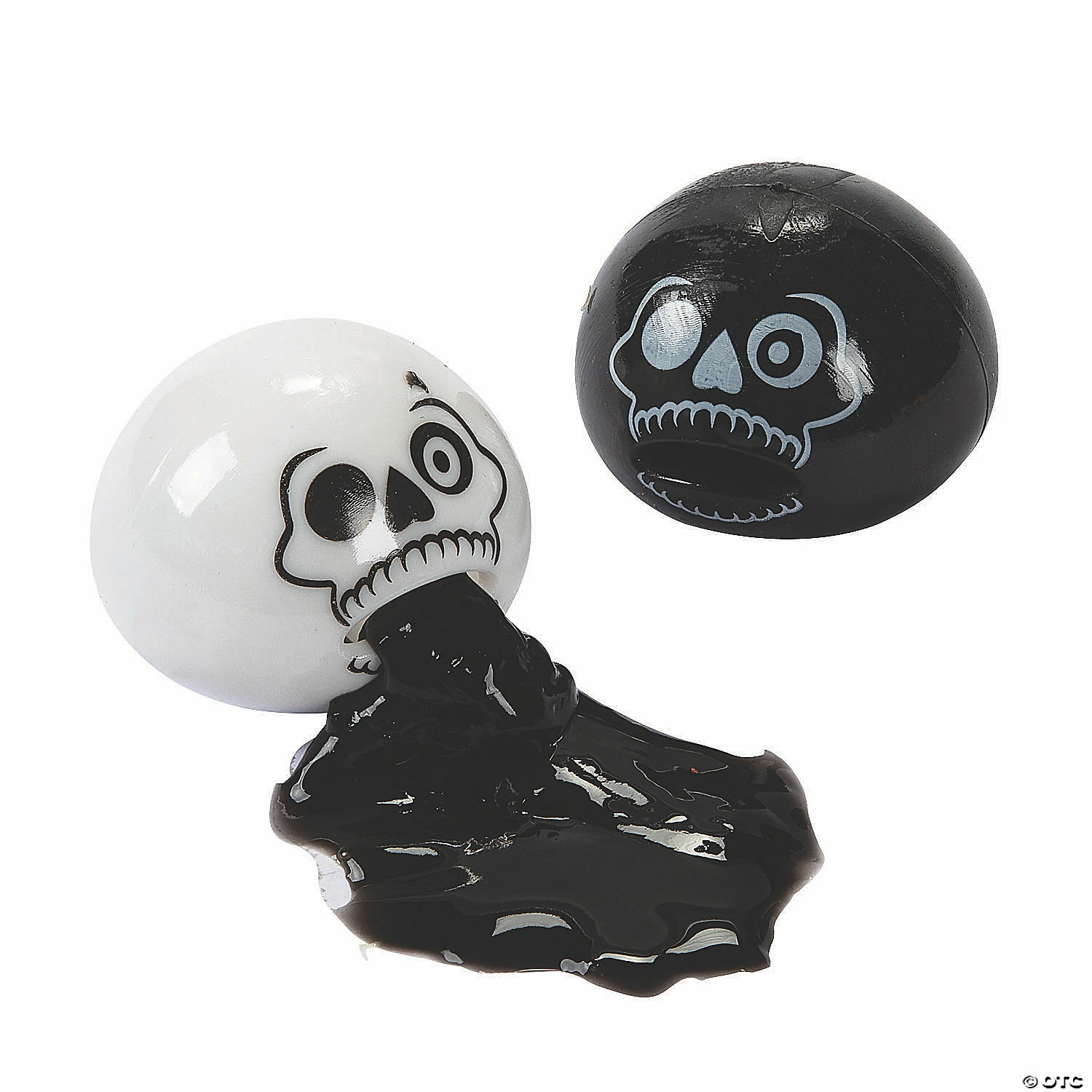 These skull slime toys make great candy-alternative Halloween treats! With the included slime, the skulls can suck up the slime and spit it out with a simple squeeze. Add them to Halloween party favor bags or give to trick-or-treaters! Vinyl. 2″ with 2-oz. bag of slime. ยฉ OTC