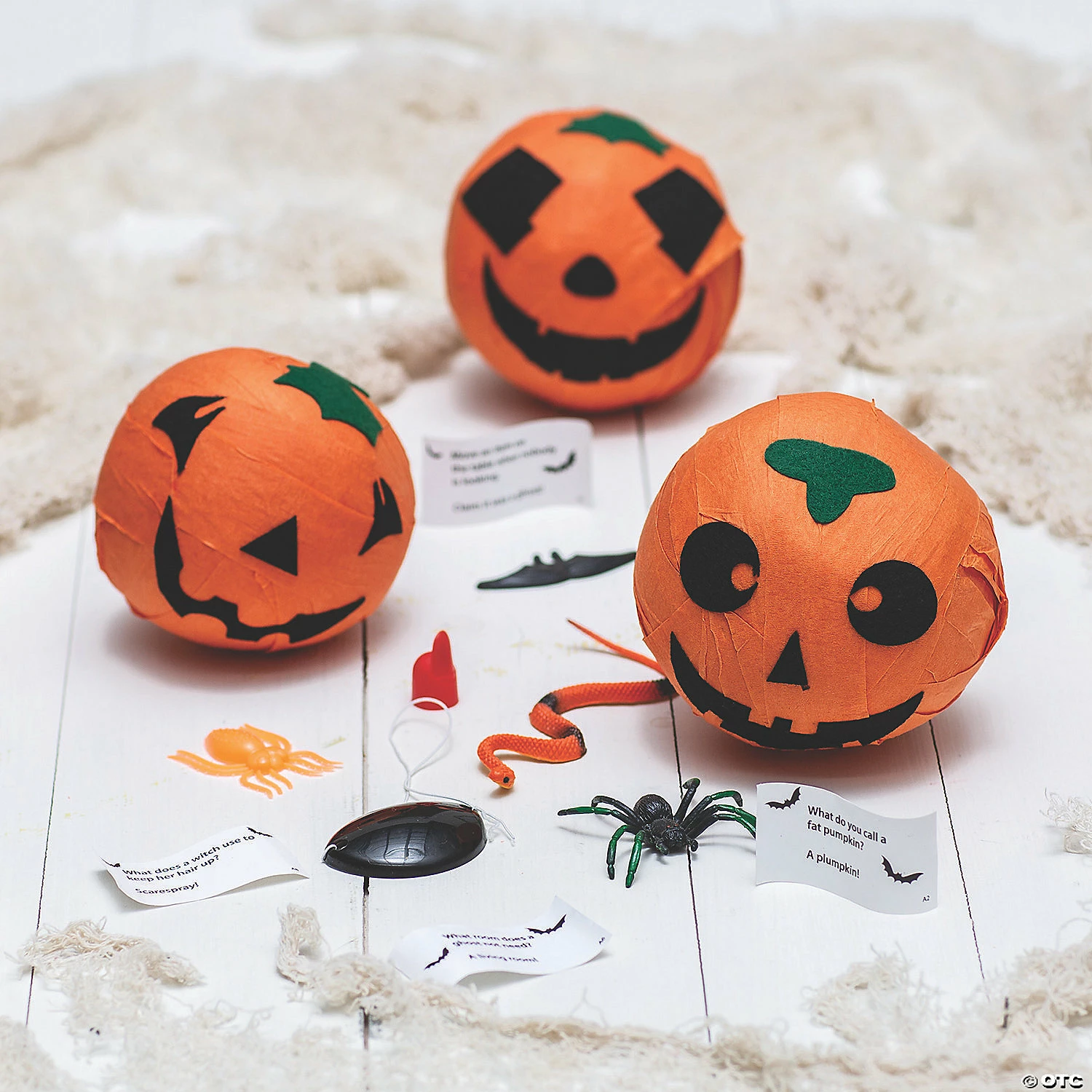 See what treats, not tricks, await inside! In fact, these surprise balls are a must-have for Halloween party games as itβs the perfect way to get little ghouls and boys up and moving. Simply separate your party into three groups and give each group a jack-oβ-lantern ball. Then the race to see who can get their ball unwrapped first begins! With toys inside each one though, everyoneβs a winner! Paper. (3 pcs. per unit) 4″ diam.