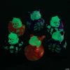 Trick-or-treaters love our vinyl Mini Glow-In-The-Dark Halloween Rubber Duckies! Dressed as witches and other creepy characters, these 1″ swimmers add some frightful fun to party favors, gift baskets and more. They’re great glowing additions to your Halloween party decorations. These vinyl, dark-loving duckies are sure to make your party guests quack with delight! (2 dozen per unit) Duckies do not float upright. Expose items to daylight to activate glow. ยฉ OTC