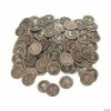 Pirate Bags With Gold Coins. Hoard your pirate treasure in these black bags! Each 3 1/2″ x 4 1/2″ faux suede drawstring bag features a fearsome skull and crossbones design and includes approx. 1 dozen plastic gold coins.