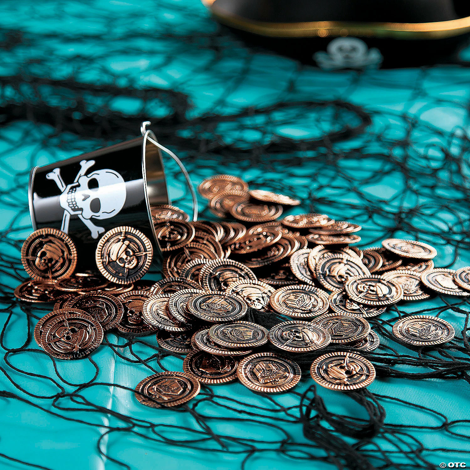 These plastic pirate coins make fun accessories for any pirate-themed party! With a skull and crossbones on one side and a treasure chest of gold coins on the other, these doubloons will add authenticity to your pirate dΓ©cor! Scatter them on party tables or put them in goody bags! These coins are a real treasure! Plastic. (144 pcs. per unit) 1 1/2″ Β© OTC