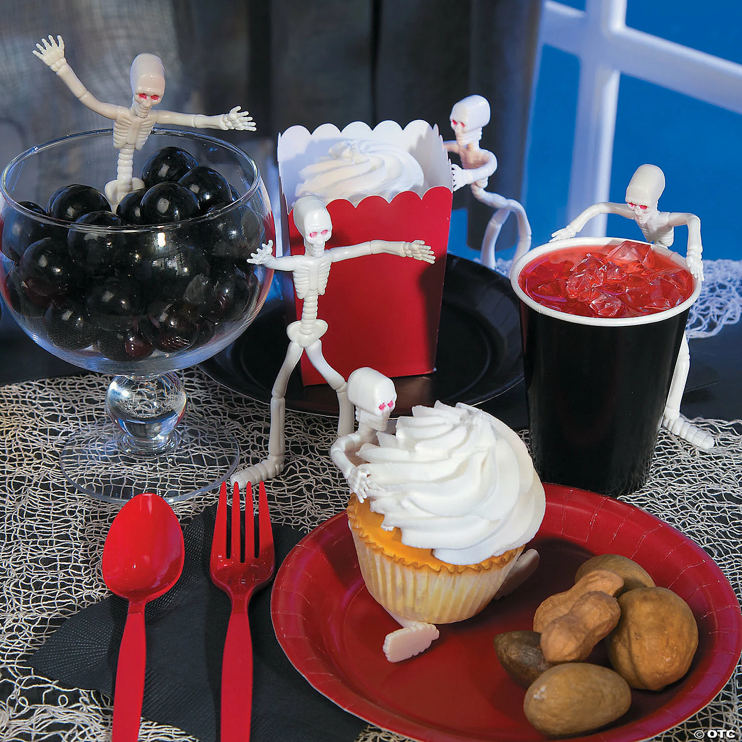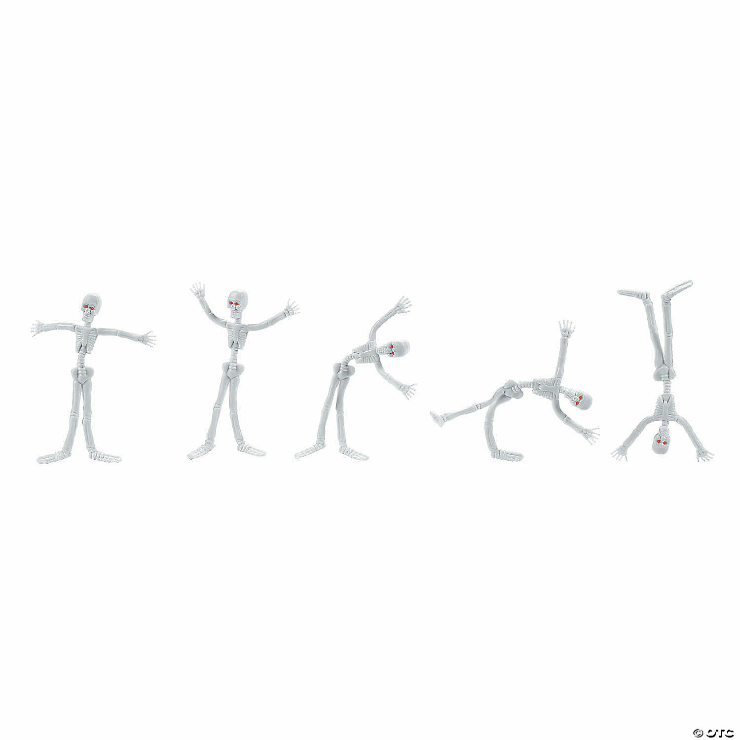 Bendable Skeletons. Bend and pose these 5 1/4″ bony vinyl skeletons any way you want! Decorate a Halloween party table with these creepy toys or give them out to trick-or-treaters for a frightfully fun goody!