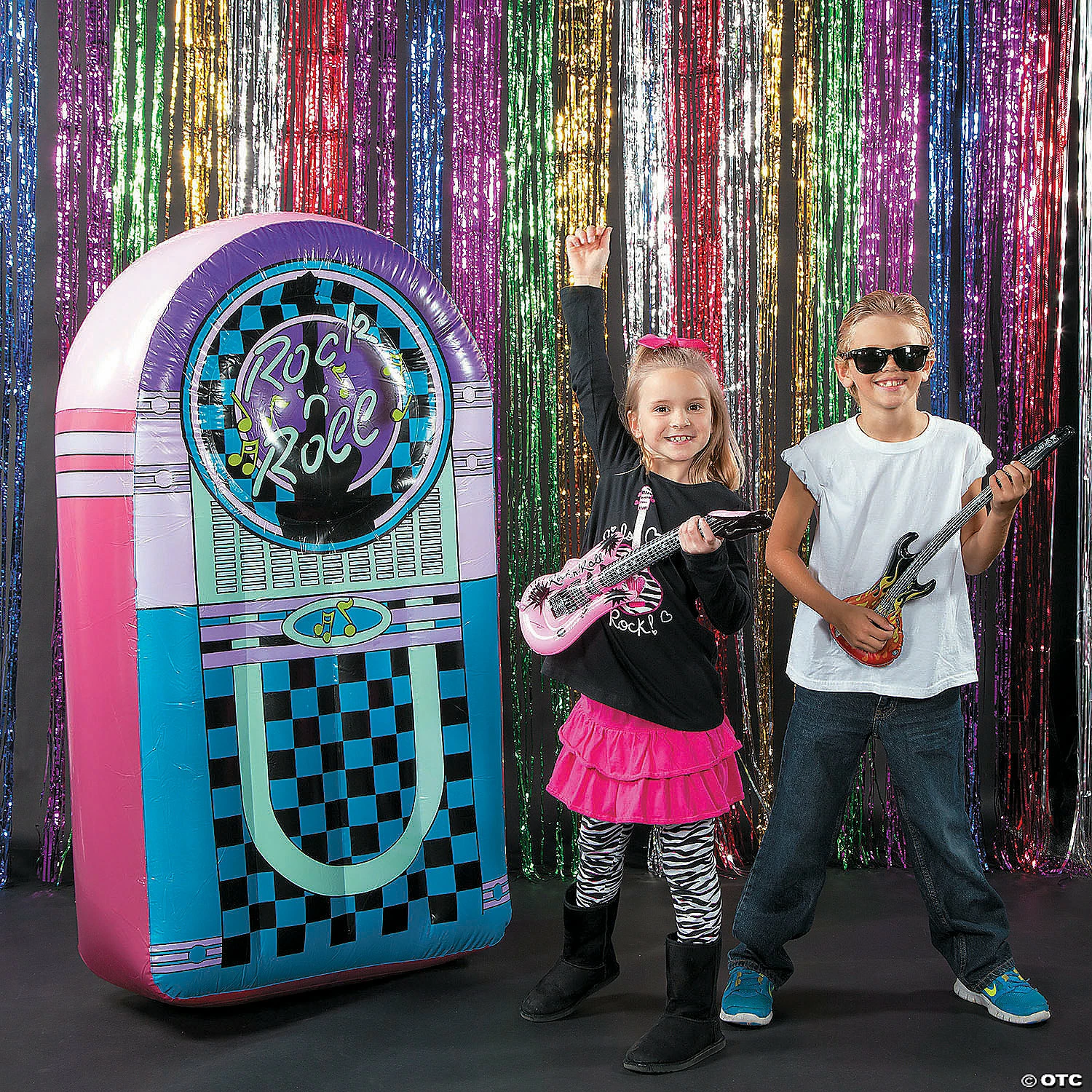 • What’s Included: This set includes 12 inflatable faux electric guitars.• Colorful Design: Ready to rock ‘n’ roll, these blow-up guitars come in enough colors that everyone can pick their favorite. Each is realistically detailed to look like an electric guitar. • Great for Kids: At 22”, they’re perfectly sized for kids but rockers of all ages will want to pick up these mini air guitars and play. • Fun for Parties: These are a fun addition to your photo booth props, 50’s style rock ‘n’ roll parties or birthday party table decor.Product Description: Let’s rock! Inflate these 12 vinyl electric guitars to turn up the volume at any party. Use them to put on an air guitar contest or as take-home table decorations for birthday parties. They also make great photo booth props for wedding receptions and corporate events. Specs: Size: 22” Quantity: 12Material: Vinyl
